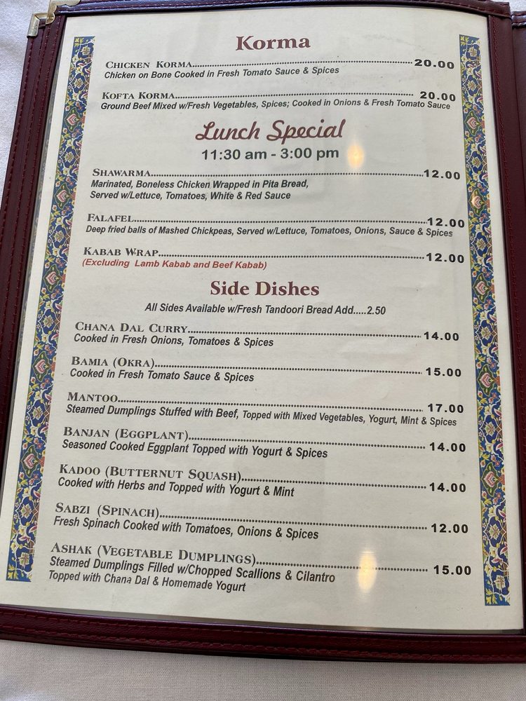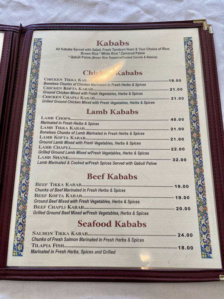 Includes 3 type of kababs: lamb, chicken and beef, choice of rice, naan and sauces. Substitute vegetable dish for an additional charge.